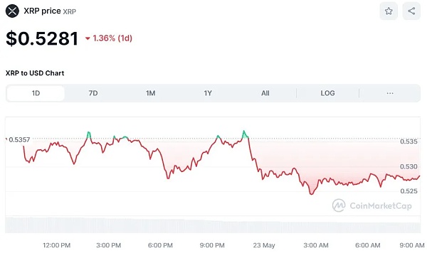 Ripple Labs 支持的代币在过去 24 小时内下跌了 1.36%,目前价格为 0.5281 美元。过去一天的最低价和最高价分别为 0.5237 美元和 0.5377 美元。此外,24 小时交易量下降了 34.56%,降至 11.8 亿美元。