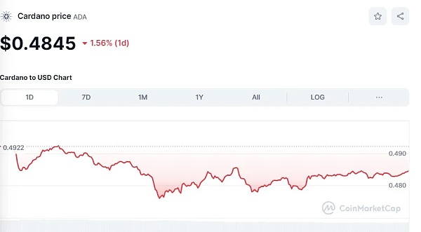ADA 的价格在过去 24 小时内下跌了 1.56%,目前交易价格为 0.4855 美元。该代币的 24 小时低点和高点分别为 0.4761 美元和 0.4924 美元,显示出交易时段的紧张氛围。同时,24 小时交易量大幅下跌了 16.47%,降至 4.0736 亿美元。