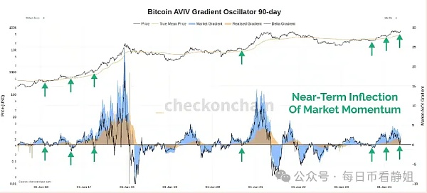 AVIV 动量振荡器(尤其是在 90 天的时间段内)一直发挥着支撑作用,表明相对于链上资本流入的价格走势正在强劲恢复,这是牛市阶段的典型特征。