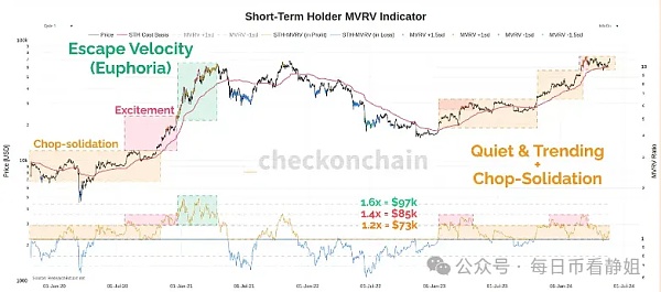 James Check 指出了短期持有者 (STH) 市场价值与实现价值 (MVRV) 指标的重要性,他认为这表明市场尚未“过度扩张、超买和过度饱和”。