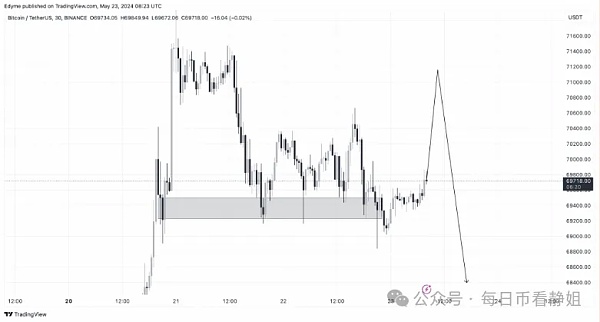 然而,加密货币略有回落,目前交易价为 68,659 美元。分析师认为,这种上涨势头的暂停是潜在大幅反弹的前兆。