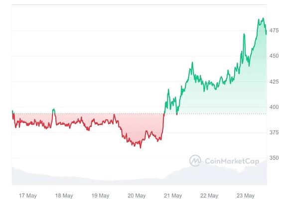 去中心化 AI 项目 Bittensor 的原生代币 TAO 价值大幅上涨。过去一天,TAO 上涨超过 10%,可能是因为有未经证实的传言称 Grayscale 计划为该代币注册新信托。Bittensor 的 价格上涨了 11.55%,达到 475.64 美元。 根据 CoinMarketCap 的数据,与上周相比,这代表着上涨了 20.85%。