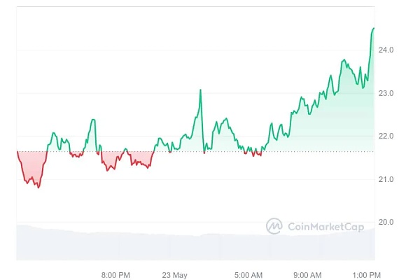在较长的一段时间内,ENS 代币的价格大幅上涨,过去一周上涨超过 72%,过去 30 天内上涨 55.38%。 由于这种激增, 投资者和交易者的兴趣日益浓厚, 导致ENS 的24 小时交易 量 增加 。