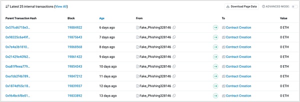 另外,通过分析PinkDrainer的相关地址可以发现,该地址每天都在通过CREATE2创建新的合约地址进行钓鱼。