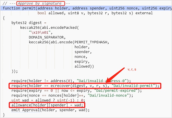 (2)攻击者调用permit函数,完成授权。