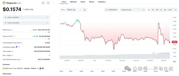 消息传出后,狗狗币一度跳涨至0.1674美元,但价格随后回落。加密社区缅怀它的传奇。