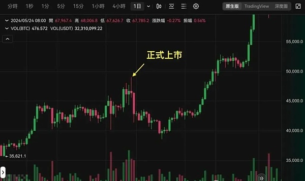 比特币现货ETF于2024年1月10日获得批准后的第二天立即上市交易,但价格短暂冲高后从47,000美元跌至38,000美元,跌势持续了将近两周,然后才开始大幅上涨。