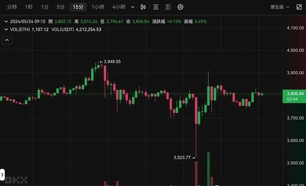 在今天清晨,以太坊的价格虽然出现了一些波动,稍早因为网络上传言“SEC将延迟六小时宣布现货以太坊ETF决议”而短暂下跌至3,523美元,随后在审核结果公布后短暂触及3,900美元,但总体波动并不明显,多空双方似乎都在等待下一步行情。