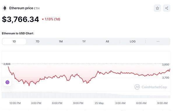 与此同时,ETH交易价格为 3,766.54 美元,较昨日下跌 1.13%。尽管美国证券交易委员会批准了 ETH ETF,但 ETH 仍继续应对波动,违背了通常的市场情绪。其 24 小时低点和高点分别为 3,631.99 美元和 3,811.78 美元。