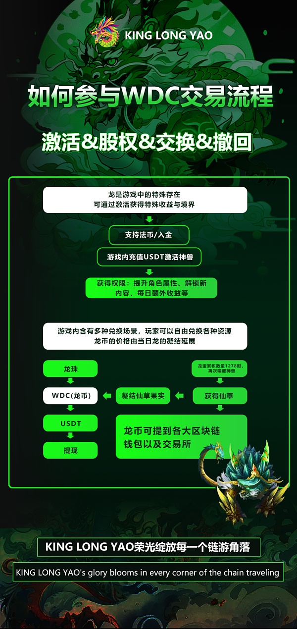 King Long Yao致力成为链游世界财富自由的缔造者,发行数字资产WDC10亿枚,拥有六大龙窟种类,玩家可以尽情地种植各种神奇的仙草。无论是龙鳞果还是九曲灵参,只要用心呵护,它们就会茁壮成长,当这些仙草绽放出绚丽的光芒时,玩家便可以将其收获,得到珍贵的仙果,最终获得WDC Token奖励。