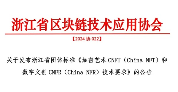 近日,浙江省区块链技术应用协会发布公告,浙江省团体标准《加密艺术CNFT(China NFT)数字文创CNFR(China NFR)技术要求》(以下简称《标准》)已完成标准制定,将于2024年6月7日起实施。杭州玛特宇宙数字科技有限公司作为发起单位之一,参与了该标准的起草、评审等工作。