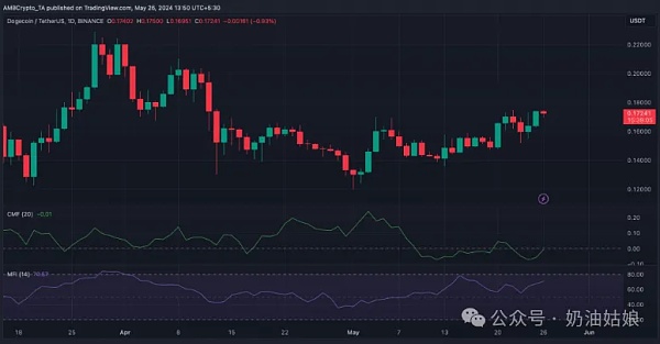 除此之外,资金流量指数(MFI)也远高于中性水平,暗示未来几天价格将进一步上涨。