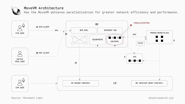 MoveVM 作为基于 Move 的区块链的本地执行环境,利用并行化提供更快的交易执行速度和更高的整体效率。