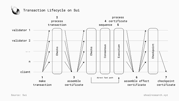 与 Solana 类似,Sui 实施了确定性并行执行,要求交易提前声明它们需要访问的账户。