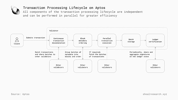 Block-STM 是一个多线程并行执行引擎,它允许乐观并行执行。交易在区块内被预排序和策略性地排序,这对于有效解决冲突和重新执行交易至关重要。Aptos 的研究发现,使用 Block-STM 的并行化理论上可以支持高达 160,000 TPS。
