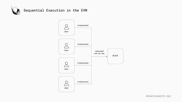较老的区块链,尤其是比特币和以太坊,采用顺序执行机制进行交易。每笔添加到区块链上的交易都会引发网络状态的变化,并且出于安全目的,虚拟机的结构一次仅处理一个状态变化。