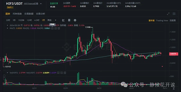 1、RWA板块近期热度持续高涨!有爆发的潜力,HIFI市值目前才1亿美刀,并且日线级别一直处于底部洗盘,这个位置上车的盈亏比还不错,目前0.837现货可选择进场!
