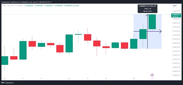 此前,Shiba Inu 连续三天上涨,涨幅高达 17.56%。这是自 2 月底 SHIB 创造类似价格上涨趋势以来,三天内涨幅最大的一次。回想一下,2 月底的涨势最终以 370% 的涨幅收官,达到0.000045 美元的年度高点。