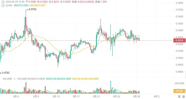 XRP巨鲸将大量代币转移到交易所,引发了投资者的担忧。最近几天,XRP的价格在0.52美元附近波动,呈现横盘整理的趋势。