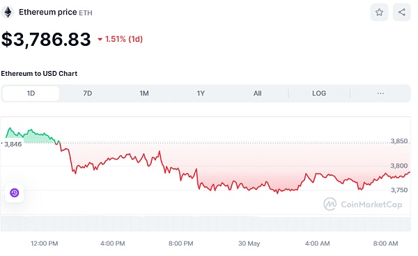 与此同时,以太坊的价格在更广泛的时间框架图中继续呈现一段时间的横盘整理,在过去 24 小时内下跌 1.51% 至 3,786.83 美元。值得一提的是,该代币的 24 小时低点和高点分别为 3,742.04 美元和 3,880.65 美元。
