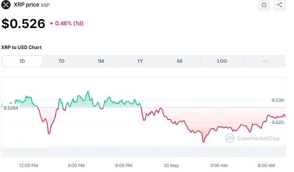 美国区块链支付巨头Ripple Labs推出的加密货币XRP继续呈现过山车式波动,交易价格为0.526美元,过去一天下跌0.46%。该代币的24小时低点和高点分别为0.5201美元和0.5321美元。