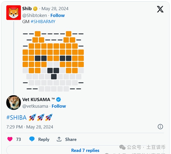 此外,广受欢迎的柴犬社区成员兽医草间弥生也用火箭表情符号回应了这条推文。