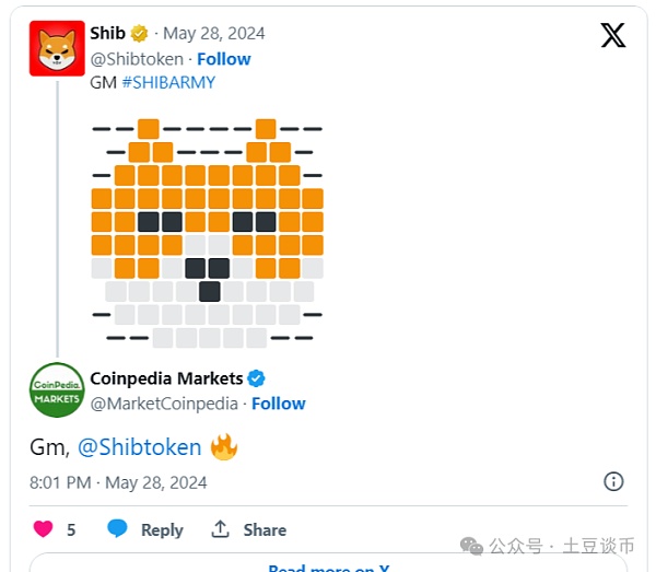 特别是预测BONE在币安上市的领先加密分析平台Coinpedia Markets的回复是“GM,@shibtoken”,旁边还有一个火表情符号。