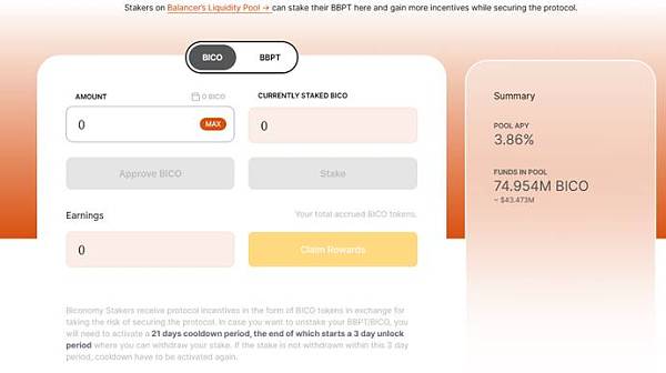BICO Staking 质押箜杸BICO 质押是 Biconomy 代币经济活动中重要的一环,用于促进生态用户增长的激励。Biconomy 在 2021 年 TGE 时就为参与交互的用户进行了 BICO 代币的箜杸,并获得市场的认可。另外在今年4月份Biconomy宣布了对质押 BICO 用户的奖励,质押 BICO 的用户可以获得数百枚 ARB 代币奖励以及相应的质押收益。