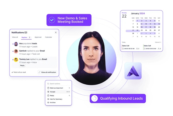以Ava为例,作为Artisan AI推出的首个AI销售开发代表(BDR),Ava已经能够自动执行现行BDR工作的80%,将原本分散在多个平台的销售拓展工具整合到一个统一平台中。以下是Ava的一些关键特点: