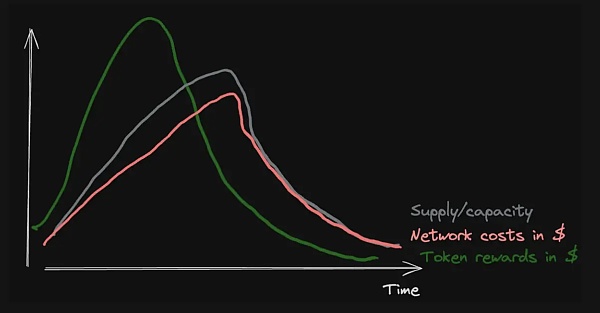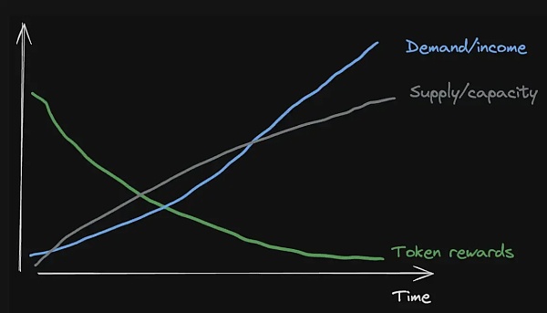 通胀性代币奖励激励节点运营商提供所需的基础设施,虽然需求尚不足以覆盖成本