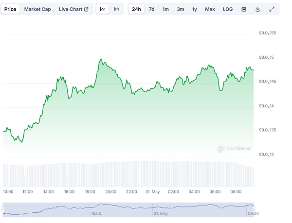 然而,该代币在过去七天中仍上涨了 0.47%,自 2023 年 5 月推出以来经历了显著的增长,飙升了惊人的 25,955%。