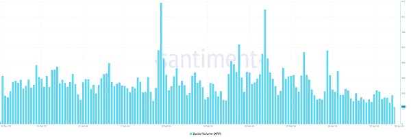 XRP 鲸鱼仍然非常感兴趣,正如 Whale Alert报告的那样,过去 24 小时内 XRP 累计价值近 3000 万美元。然而,XRP 社交量的下降,加上缺乏持续的高水平社交活动,可能意味着短期内由社交炒作推动的看涨突破不太可能发生。