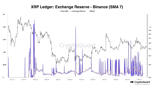如果 XRP 能够持续突破这一水平,则可能会引发进一步的买盘,目标可能是下一个阻力位 0.55 美元左右。与此同时,XRP 的交易所储备在过去一周有所减少。