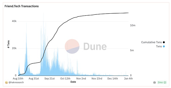 尽管 friend.tech 在市场顶峰时期拥有 80 万独特用户地址,但其用户留存率后来大幅下降,显示出该模式面临的挑战和限制。