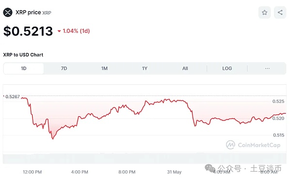 Ripple Labs 推出的加密货币XRP跟随价格下跌,下跌 1.04% 至 0.5213 美元。其 24 小时低点和高点分别为 0.5175 美元和 0.5273 美元。