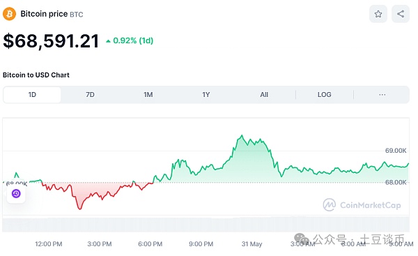 过去 24 小时内,这款旗舰加密货币的价格上涨了 0.92%,目前价格为 68,591.21 美元。此外,BTC 的24 小时低点和高点分别为 67,118.08 美元和 69,500.54 美元。