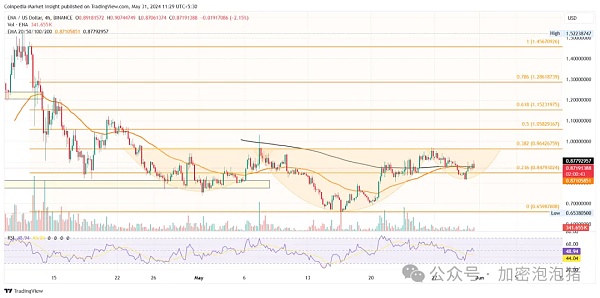 继 4 月和 5 月初的回调阶段之后,ENA 价格从 0.65 美元的底部反弹。在过去几周中,复苏反弹已超过 0.80 美元的水平并测试了 0.96 美元的关口。