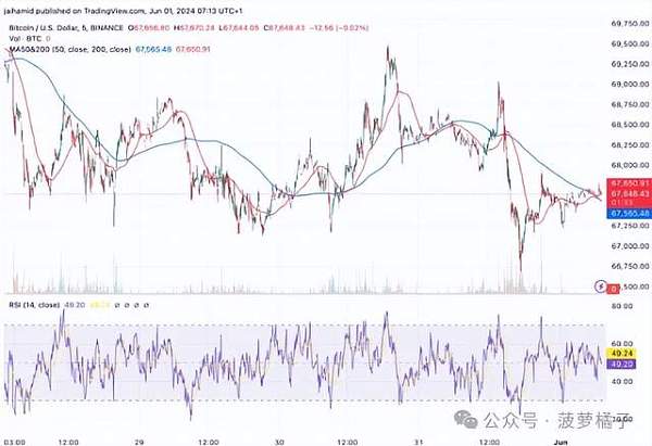 相对强弱指数 (RSI) 基本保持在 40 至 60 之间,表明尽管市场没有超买或超卖,但正倾向于中立区的高端。这可能意味着购买压力正在增强。
