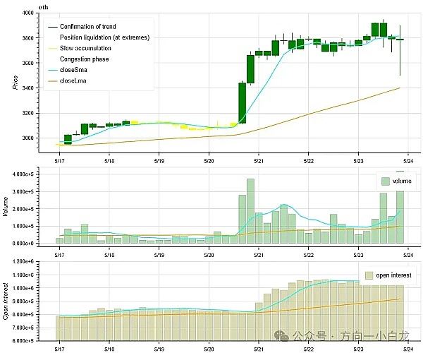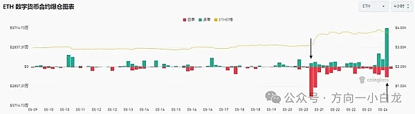然而,在 2024 年 5 月 23 日,以太坊现货 ETF 正式通过后,以太坊价格却出现了急速下跌。最高价从 3950 美元下跌至最低价 3524 美元。此时,多头合约也发生了爆仓,爆仓量高达 8816 万美元。随后,以太坊价格出现反弹,并回升至 3800 美元。