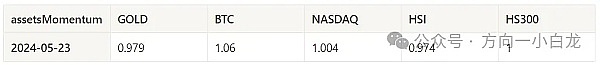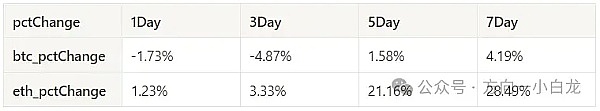 表格显示过去一个周的价格变化率