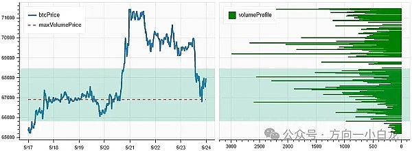 上图是 BTC 过去一周的密集成交区分布图