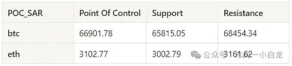表格显示 BTC 与 ETH 过去一周中每周的密集成交区间