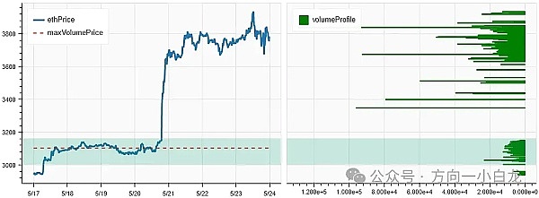 上图是 ETH 过去一周的密集成交区分布图