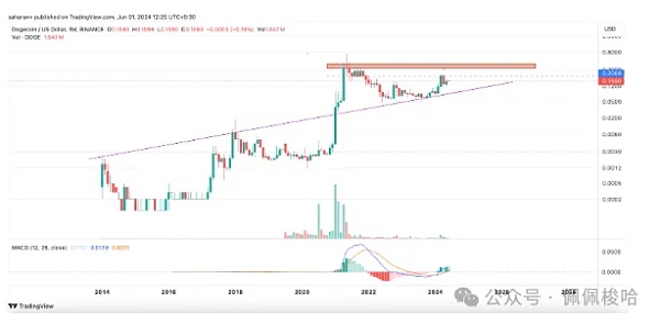 DOGE 价格上涨的历史价格走势表明,该代币正缓慢而稳定地走向高点。在上个月以看跌姿态收盘后,多头已重新占据主导地位。MACD 刚刚转为看涨并在正范围内上涨,表明无论看跌干扰如何,涨势可能仍会继续上升。