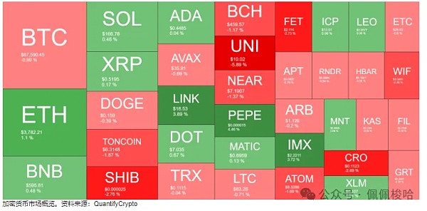 BNB、SOL、XRP、ADA、DOT涨幅不大,LINK、PEPE日内涨幅都在3-4%左右。