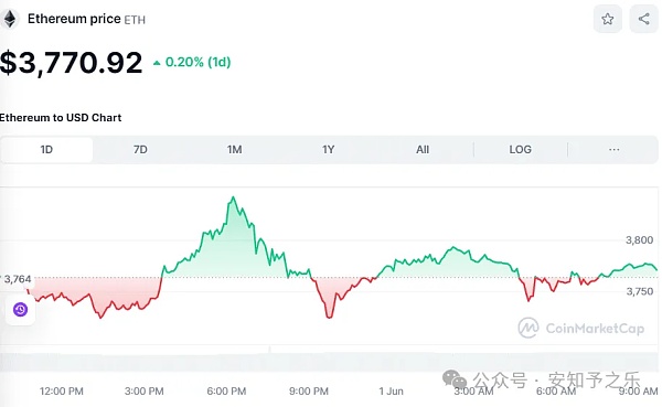 同时,市值排名第二的加密货币以太坊(ETH)在过去的 24 小时内也经历了剧烈波动。截至目前,ETH 的价格上涨了 0.20%,达到 3,770.92 美元,而过去 24 小时内的最低价和最高价分别为 3,723.84 美元和 3,843.86 美元。