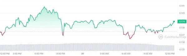 当前,Kaspa 的价格为 0.1388 美元,盘中小幅上涨 1.89%。在过去一年中,Kaspa 的价格大幅上涨了 938%。这一涨幅超过了前 100 种加密资产中的 94%,包括比特币和以太坊等主要代币。