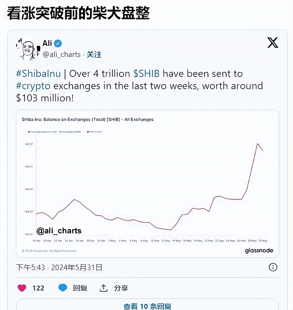 根据 Glassnode 提供的链上数据分析,过去两周内,已有超过 4 万亿 SHIB(价值超过 1.03 亿美元)被存入不同的加密货币交易所,准备获利回吐。上周,Shiba Inu 兑美元的价格表明买家难以推高 meme 币,这种情况在本周再次出现。