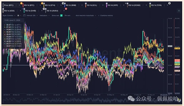 1 天间隔内的 RSI 显示,大多数主要代币都接近或高于中性 50 关口,表明看涨。以太坊 [ETH]和Solana [SOL]表现最强,读数分别为 67 和 55。