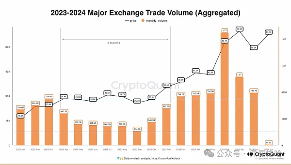这里还值得注意的是,与 3 月份相比,主要山寨币的交易量大幅下降。加密货币分析师 Axel Adler 在 X 的一篇文章中指出了这一点,声称比特币缺乏动力一直在影响整个市场的情绪。